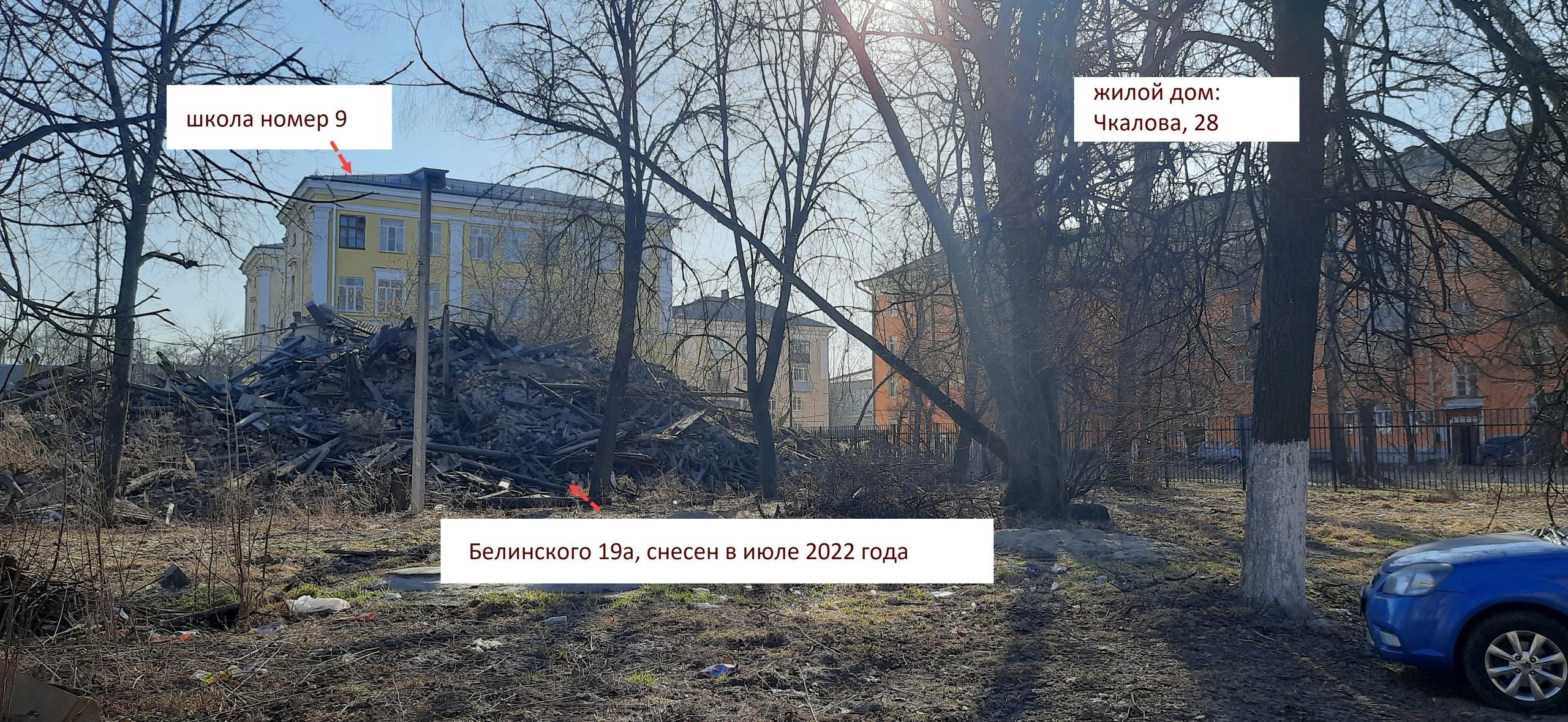 Дом №19а на улице Белинского был построен в 1949 году, а снос провели 12 июля 2022 года. При этом на момент демонтажа в нем еще были прописаны люди.