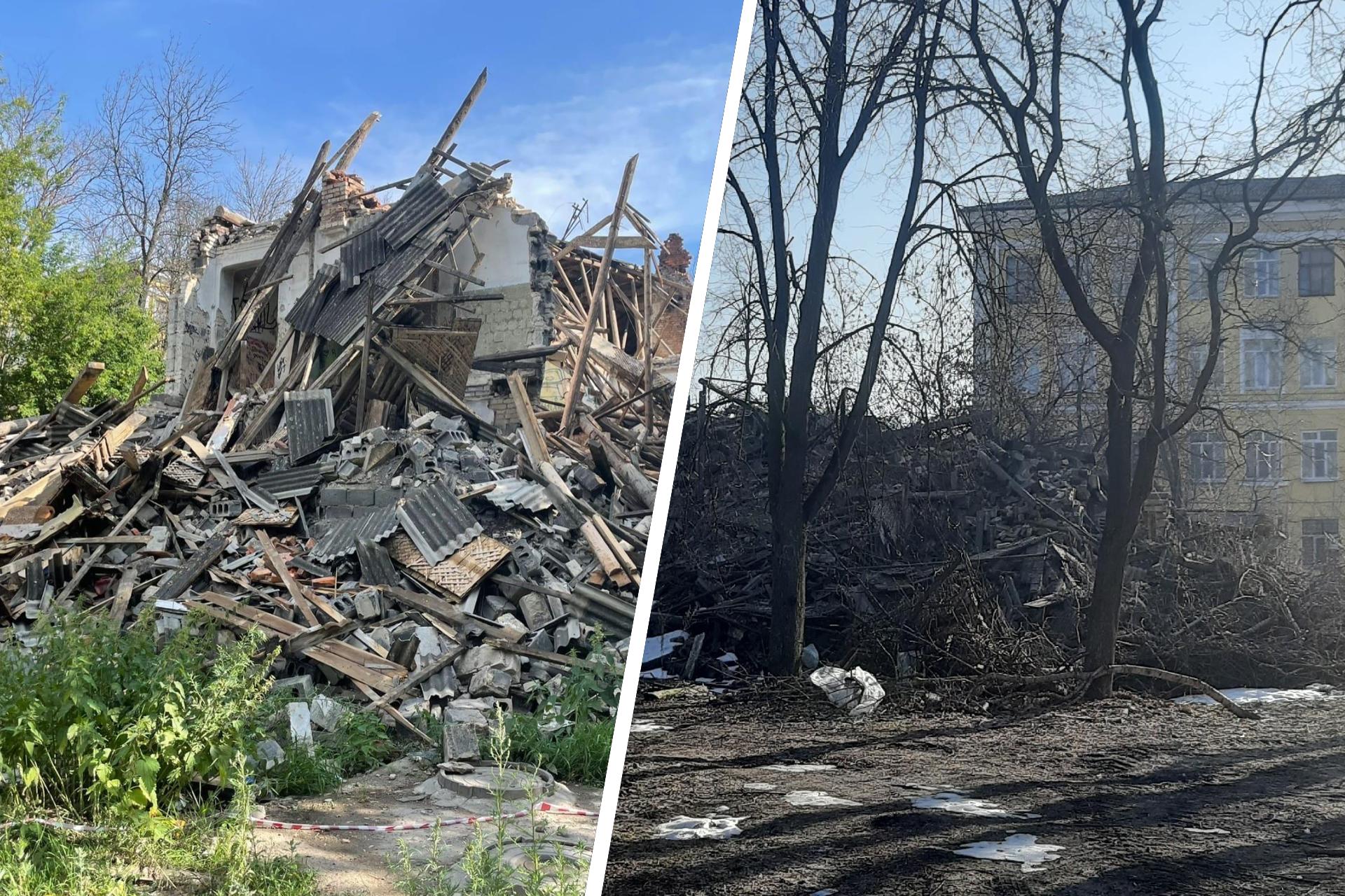 Остатки снесенного дома на улице Белинского в Ярославле не убираются уже четыре года