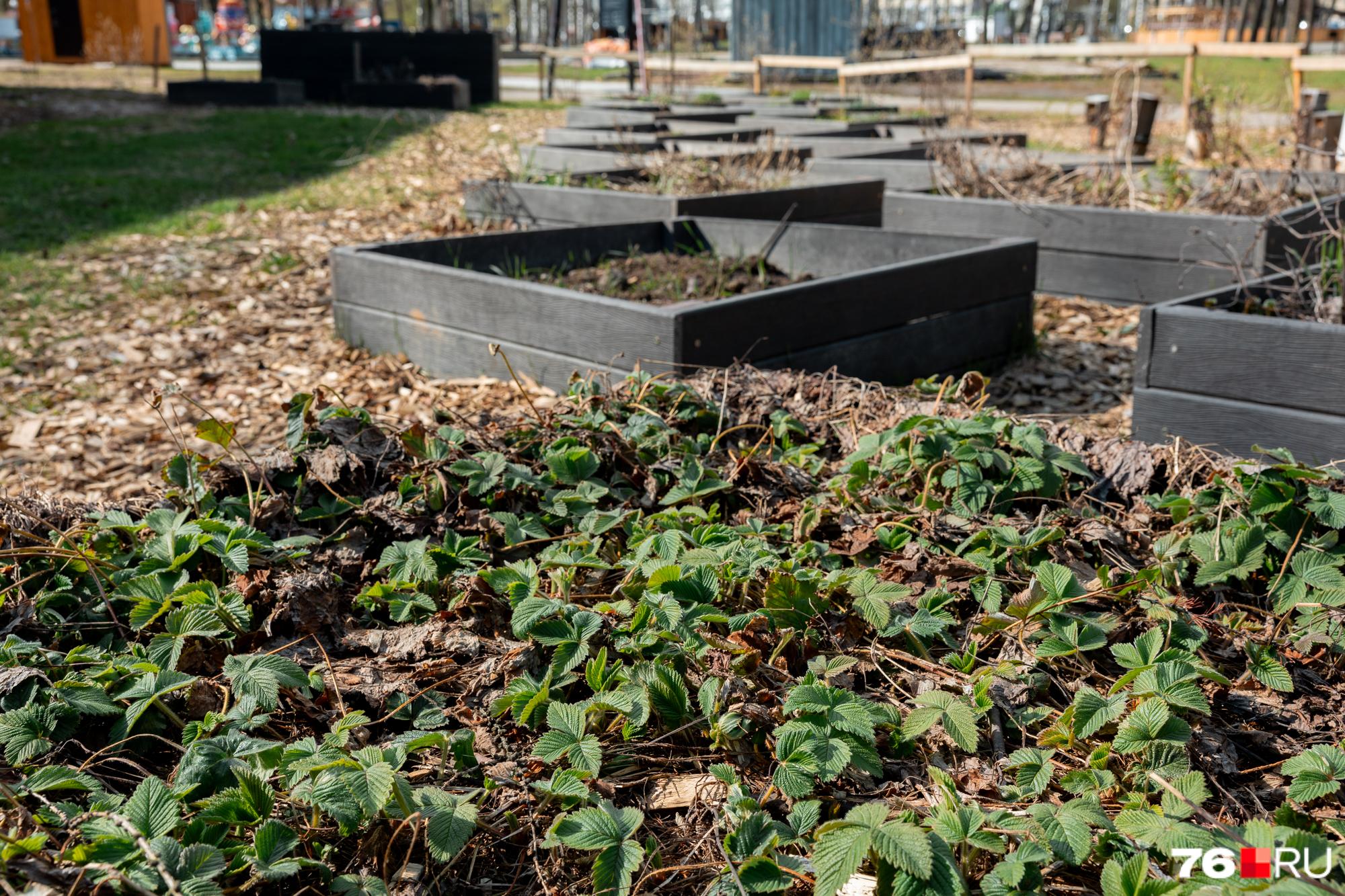 На грядках уже высажены земляника и многолетние травы