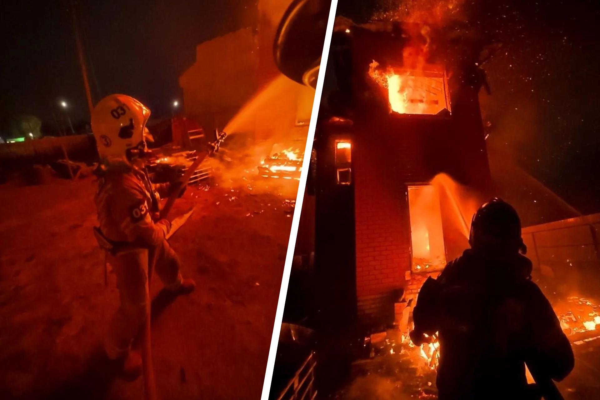 Огонь уничтожил дом на площади 160 квадратных метров. Также поврежден соседний дом. Предварительная причина пожара — аварийный режим работы электросети. Проводится проверка.