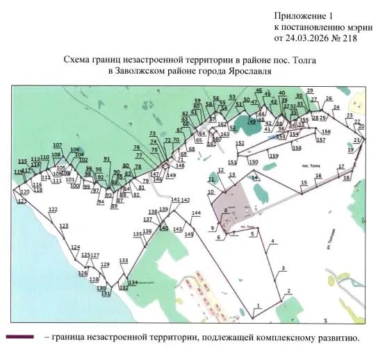 В документе говорится: «Мэрия города Ярославля постановляет провести аукцион на право заключения договора о комплексном развитии незастроенной территории в районе поселка Толга в Заволжском районе в срок не позднее шести месяцев со дня принятия настоящего постановления».
